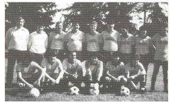 stehend v.l.: Trainer Lothar Adams, Berni Nich, Helmut Dick, Jürgen Lamberti, Horst Engel, Volker Specht, Heinz Steffen, Thomas König, Rainer Fischer