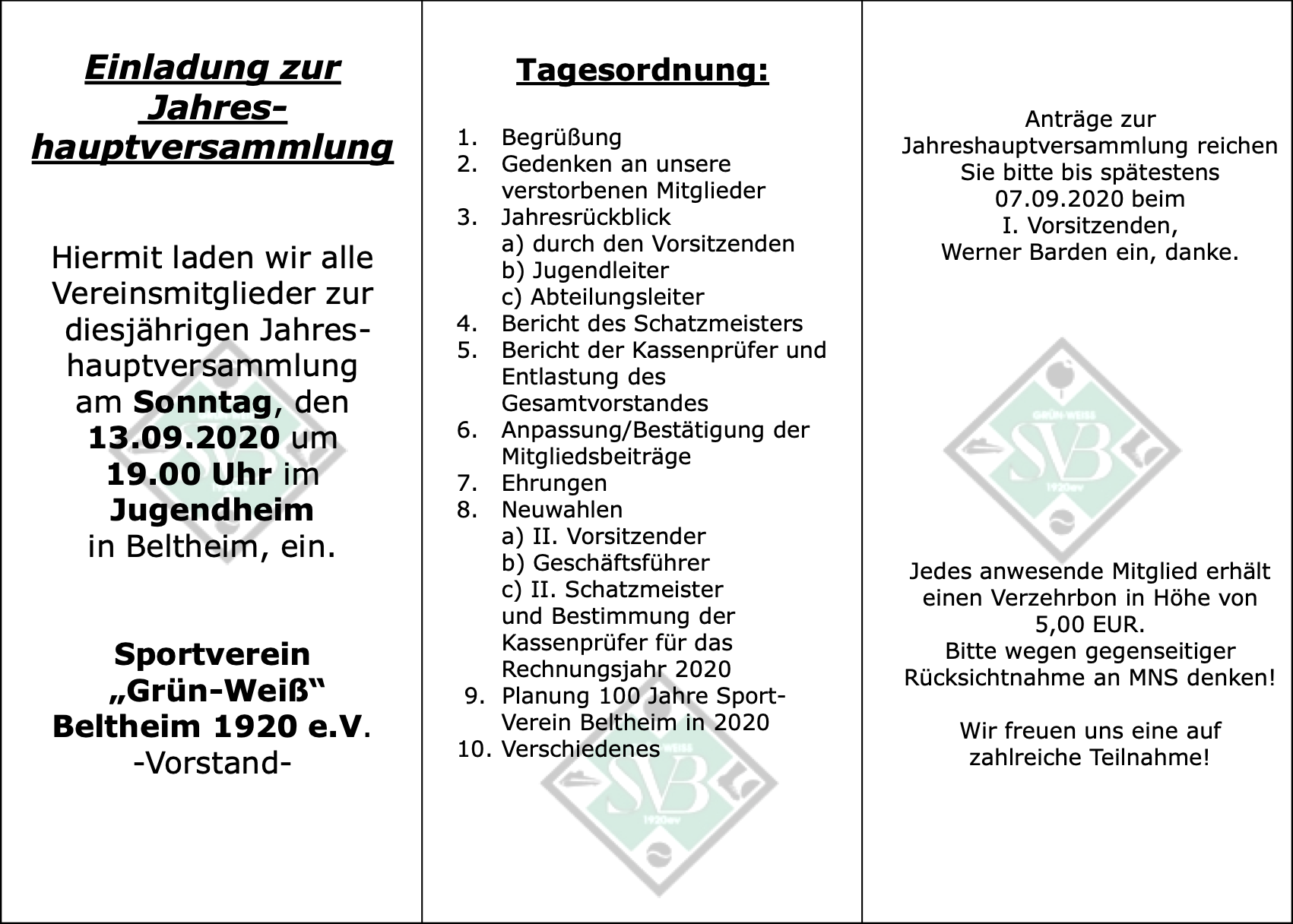 Der Vorstand freut sich auf euer Kommen und einen fröhlichen Vereinstag!