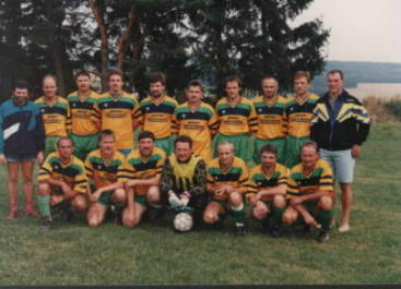 Reihe hinten, von links nach rechts: Christoph Schmitt, Pascal Liesenfeld, Sascha Bechter, Rüdiger Schäfer, Holger Glockner, Peter Seis, Peter Weinand, Torsten Jakobs, Betreuer Marco Görgen.